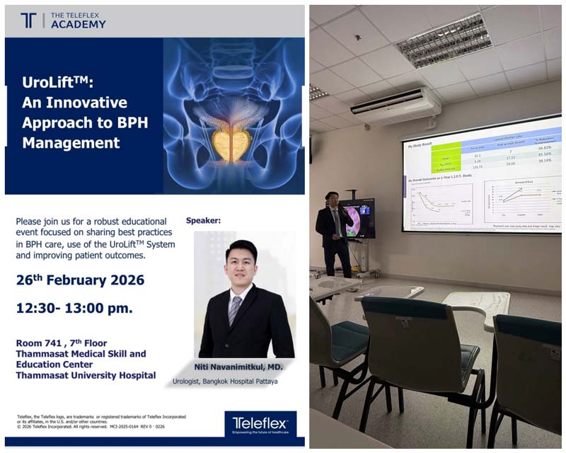 ขอขอบคุณ คณะแพทยศาสตร์ มหาวิทยาลัยธรรมศาสตร์ เฉลิมพระเกียรติ และ Teleflex Academy สำหรับโอกาสอันทรงคุณค่าในการร่วมแลกเปลี่ยนองค์ความรู้ทางวิชาการด้าน ศัลยศาสตร์ระบบทางเดินปัสสาวะ (Urology) ในหัวข้อ